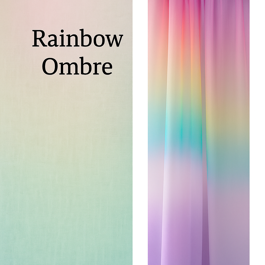 * A set of two rainbow ombre sheer voile panels.The panels are 100% polyester, machine washable.Panel dimensions : 2 x 140cm Width x 182cm Drop ( 2 x 55" x 72")
